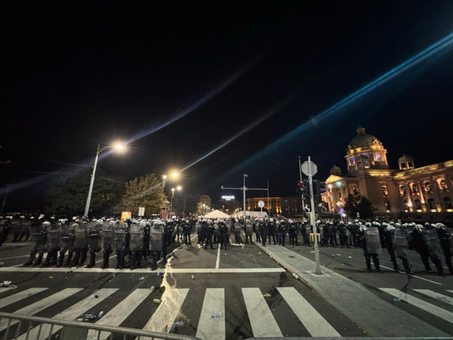 U blizini Doma Narodne skupštine i obližnjeg šatorskog naselja pristalica vlasti prisutan je i veliki broj policajaca, a oko 16:30 sati došlo im je i pojačanje kolega u opremi za razbijanje demonstracija, koji su stigli iz Kosovske ulice i iz pravca Trga Nikole Pašića.