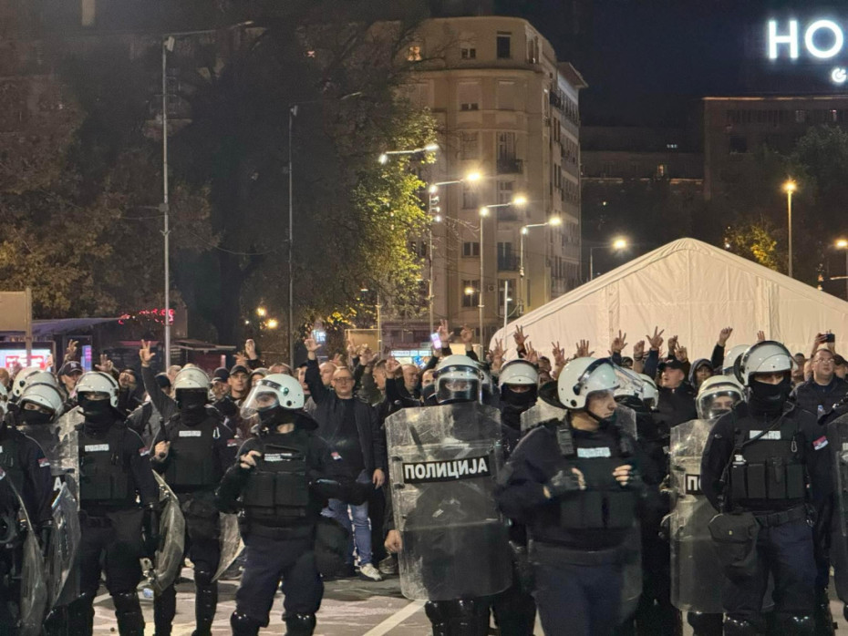 Prethodno je u šatorsko naselje policija iz pravca Trga Nikole Pašića i Skupštine grada pored Pionirskog parka propustila nekoliko stotina ljudi, a stigle su i dodatne policjske snage sa opremom za razbijanje demonstracija.