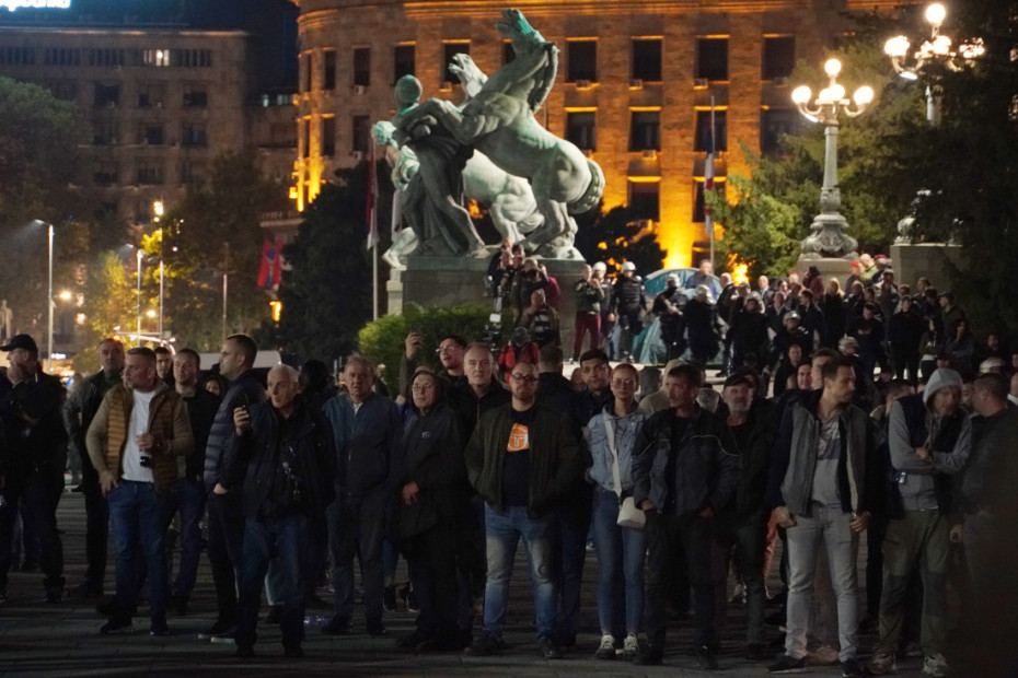 (FOTO) Topovski udari ispred Skupštine: Kordon policije između dve grupe građana, u kneza Miloša bačene baklje