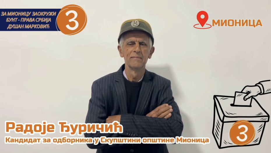 Radoje Đuričić (62) je penzioner, ali i predstavnik i poverenik liste BUNT - Prava Srbija u opštini Mionica, a time je i kandidat za budućeg predsednika.
