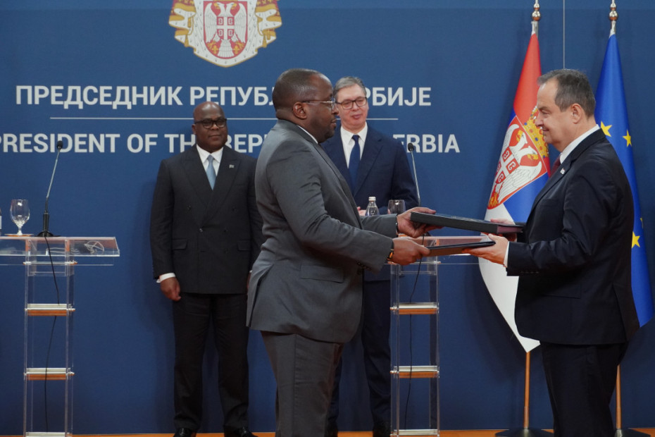 Ceremonija razmene potpisanih bilateralnih dokumenata u prisustvu predsednika Republike Srbije Aleksandra Vučića i predsednika Demokratske Republike Kongo Feliksa Antoana Čisekedija Čilomba planirana je u 12 časova, nakon čega će se predsednici obratiti medijima.