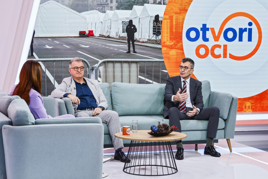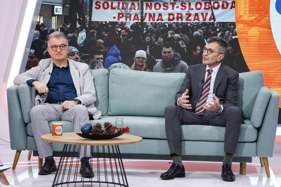 O karakteru godine za nama, političkim programima, odnosu prema Evropskoj uniji i odgovornosti institucija govorili su bivši ministar odbrane i funkcioner SNS Zoran Đorđević i Slobodan Cvejić, sociolog i funkcioner Srbija centra.
