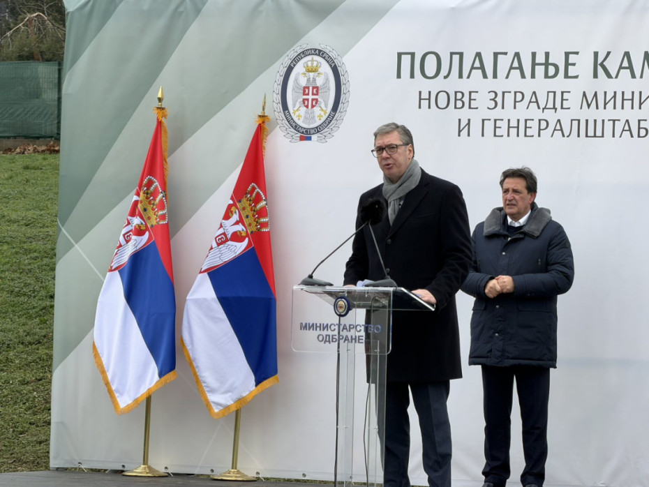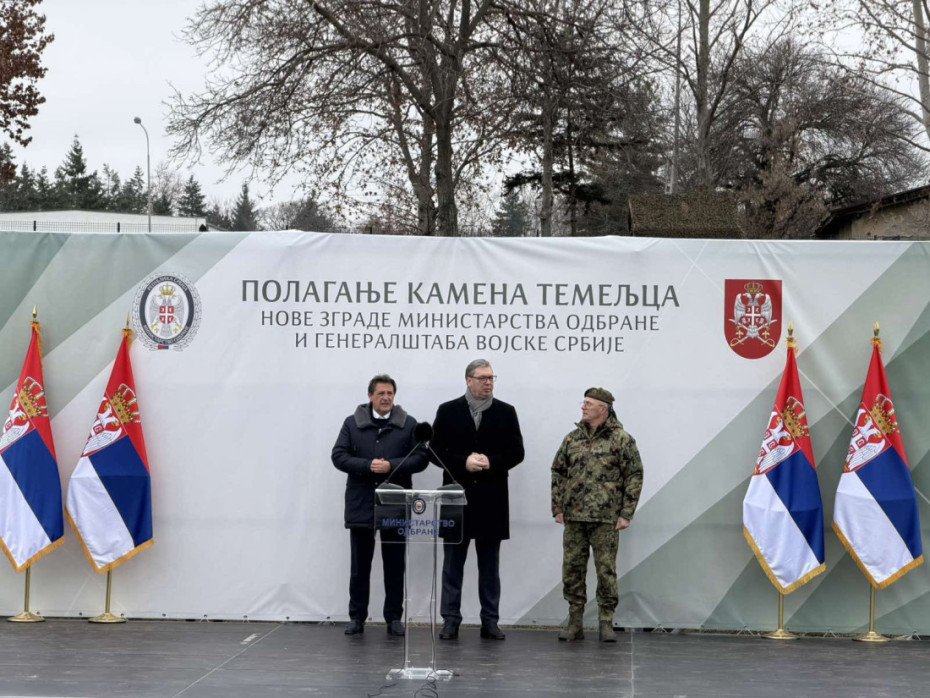 Predsednik Srbije Aleksandar Vučić položio je, zajedno sa ministrom odbrane Bratislavom Gašićem i načelnikom Generalštaba Vojske Srbije Milanom Mojsilovićem, kamen temeljac za izgradnju novog objekta Ministarstva odbrane i Generalštaba Vojske Srbije u kasarni "Banjica" u Beogradu.