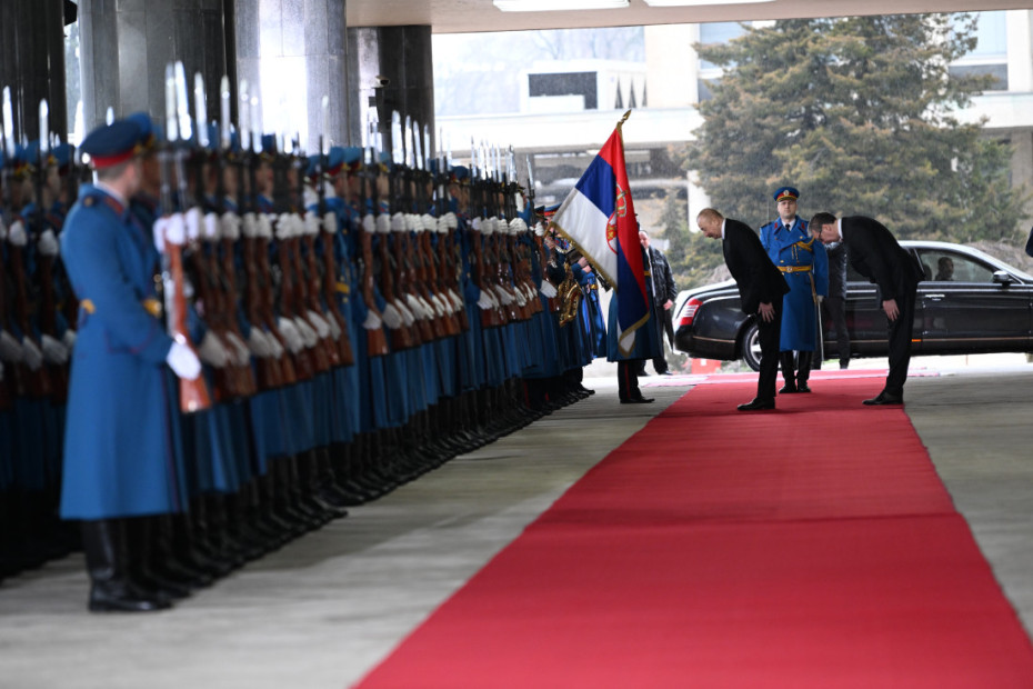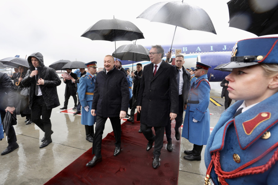 Alijev, koji je u Beograd doputovao sa suprugom, dočekan je uz crveni tepih i počasnu Gardu, a dvojica predsednika srdačno su se pozdravila.