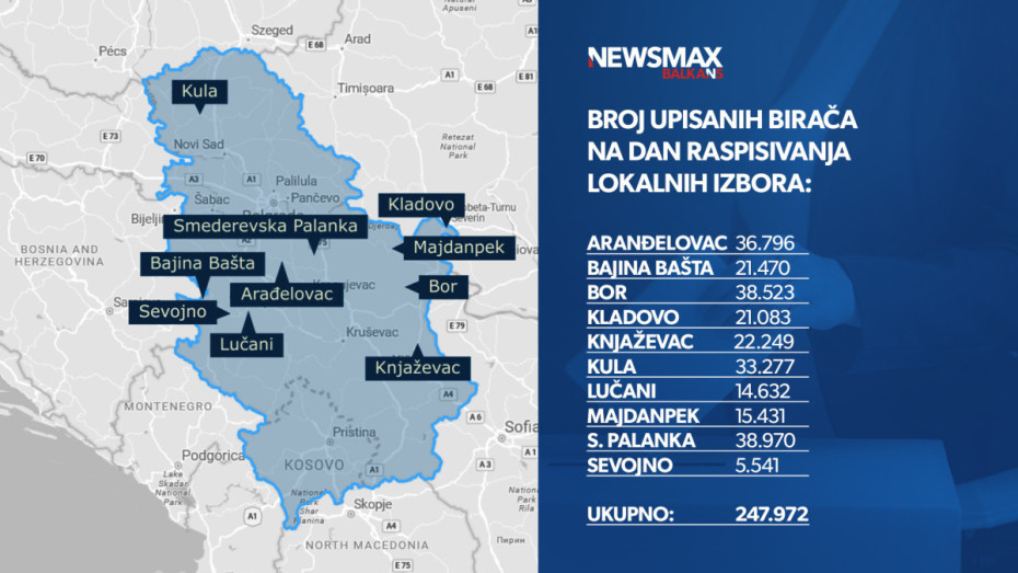 (INFOGRAFIKA) Pravo glasa na lokalnim izborima 29. marta ima skoro četvrt miliona birača, najviše u Smederevskoj Palanci