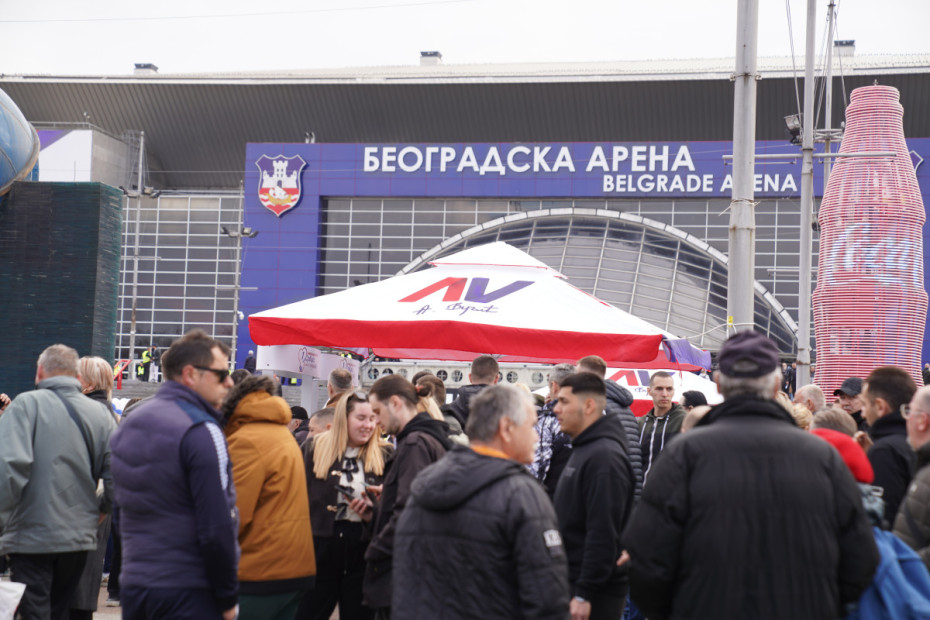 "Od toga je u hali Beogradska arena prisutno oko 32.000 građana, dok je u neposrednoj zoni hale prisutno oko 38.000 građana", saopštio je MUP.