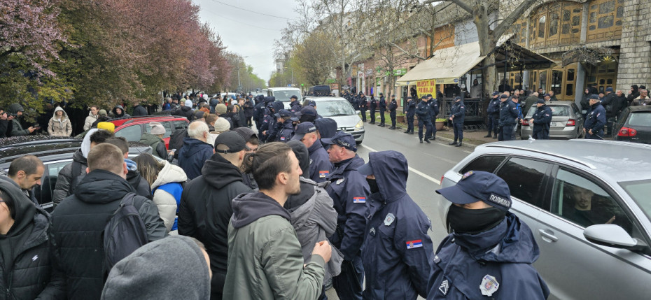 19.10 - U Crvenki pristalice opozicije i dalje okupljene ispred prostorija SNS