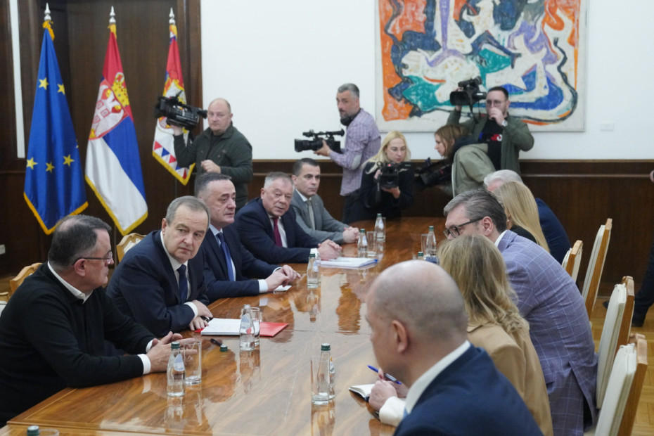 U Predsedništvu Srbije su oko 11.00 sati završene konsultacije predsednika Aleksandra Vučića sa delegacijom SPS-a koju je predvodio predsednoik stranke Ivica Dačić.