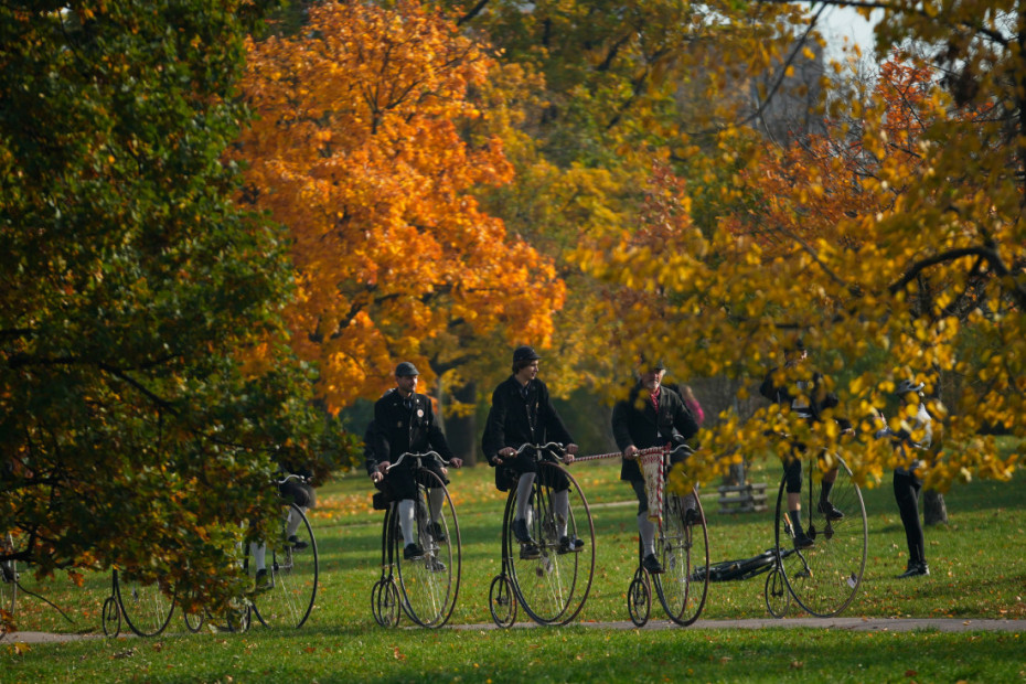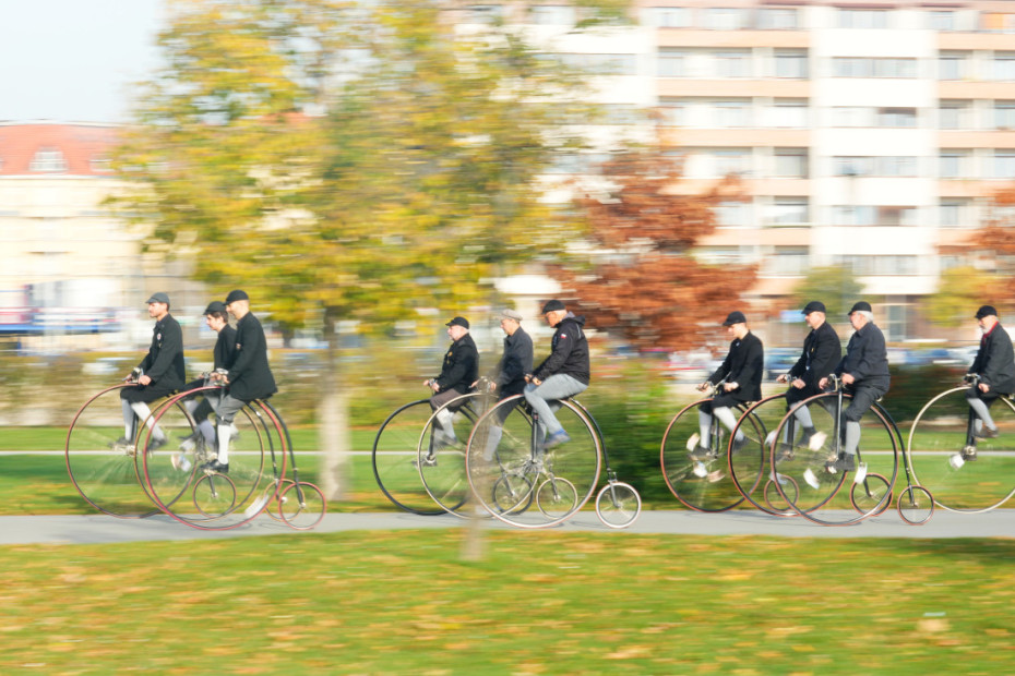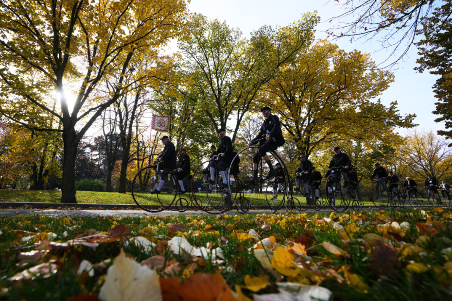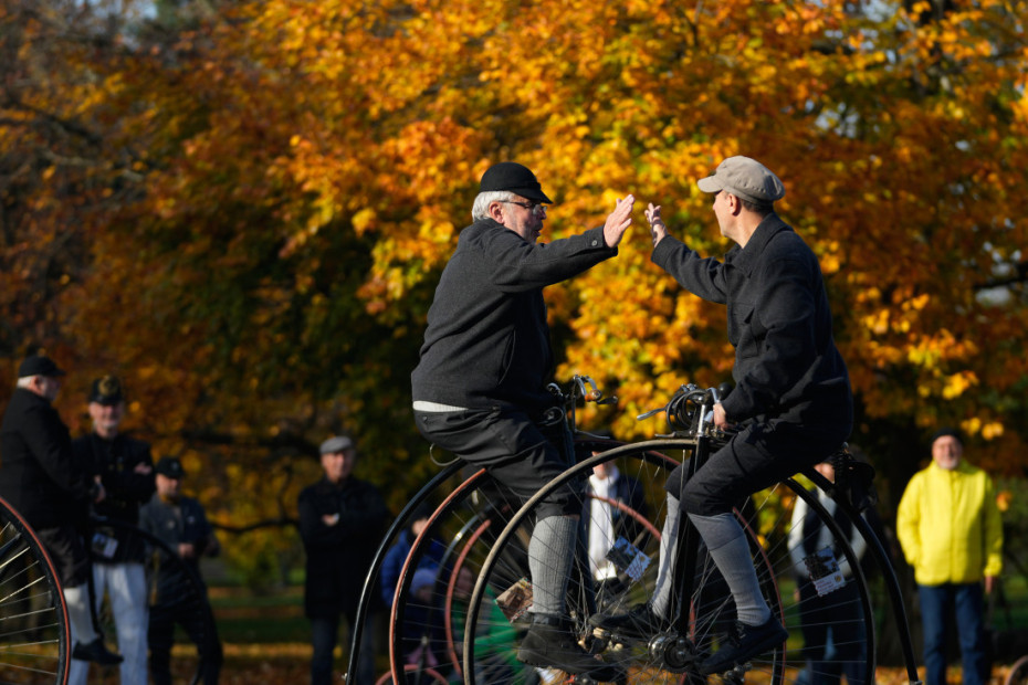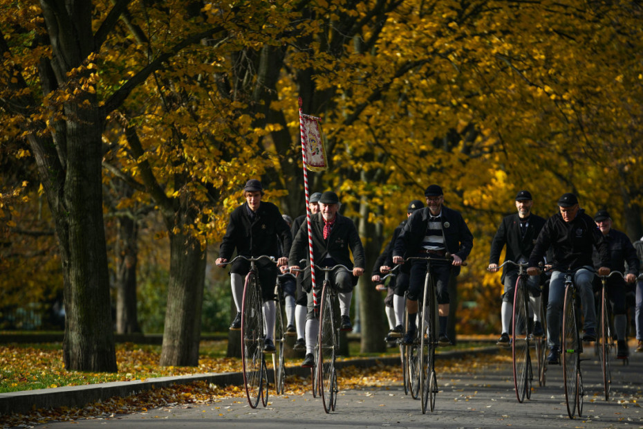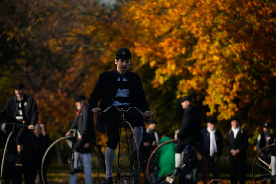U parku u Pragu svake jeseni oživljava duh starih vremena - visoki bicikli peni-farting vraćaju se na stazu, a vozači u retro kostimima dokazuju da stil i ravnoteža nikad ne izlaze iz mode.