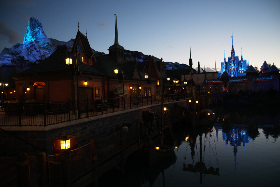 Zona "Zaleđenog kraljevstva" verno dočarava skandinavsko selo Arendel iz filma, sa bogatim detaljima i scenografijom. Glavna atrakcija je šestominutna vožnja čamcem kroz svet princeza Ane i Else, sa animatronikom i velikim scenama, koja bi mogla da postane jedna od glavnih atrakcija parka. Tu se nalazi i vrteška inspirisana pričom o Zlatokosi, po uzoru na poznate "šolje koje se okreću".