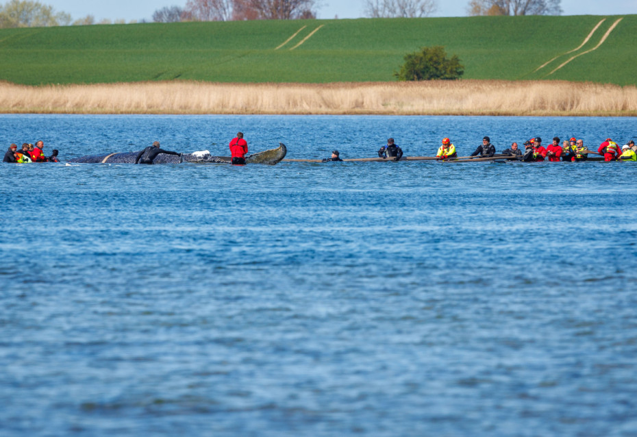 Kod nemačke obale Baltičkog mora počeo je pokušaj izvlačenja nasukanog grbavog kita iz plitkih voda. Javnost je kita nazvala Timi i u dobrom je stanju.