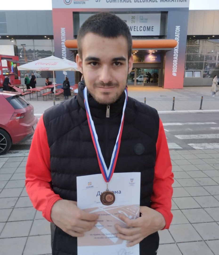 "Najveći uspeh bila mu je trka na Dunavskom polumaratonu u Apatinu gde je osvojio srebro u regularnoj konkurenciji do 19 godina. Osvojio je i dva puta prvo mesto na paraatletskom takmičenju u Kruševcu na 5.000 metara. Na državnom paraatletskom prvenstvu na 1.500 metara osvojio je srebro i bronzu", navela je Dragana.