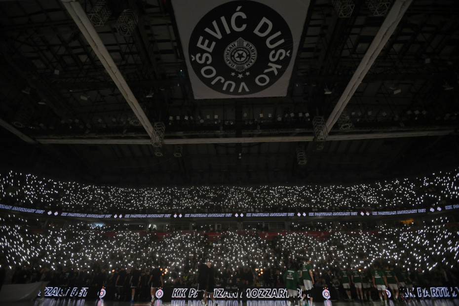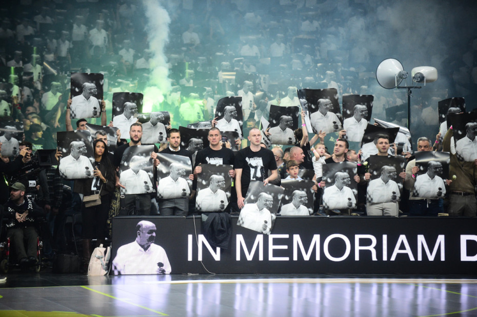 Košarkaški klub Partizan i navijači su pre početka utakmice protiv Žalgirisa odali počast preminulom Dušku Vujoševiću, a igrači su nosili specijalne majice u čast najtrofejnijeg trenera Crno-belih u istoriji.
