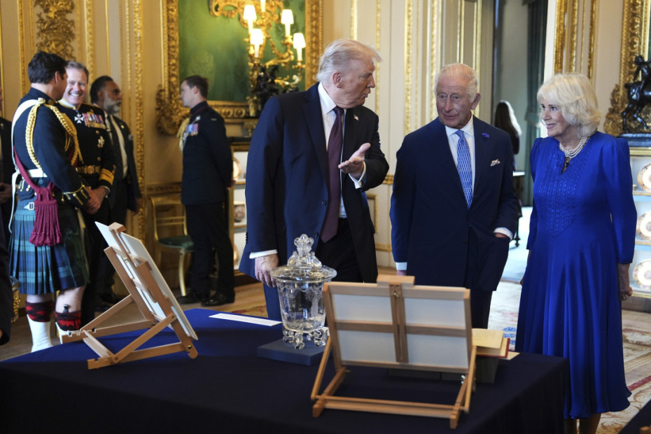 Britanski kralj Čarls Treći i američki predsednik Donald Tramp nakon svečanog ručka razmenili su poklone.