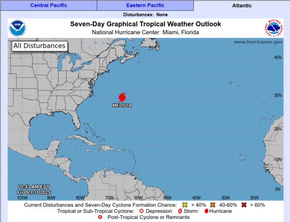 U četvrtak je Melisa krenula sa Bahama i usmerila se prema Bermudima, gde se očekuje da će se vremenski uslovi "pogoršati" kasnije tokom dana, saopštio je Nacionalni centar za uragane.