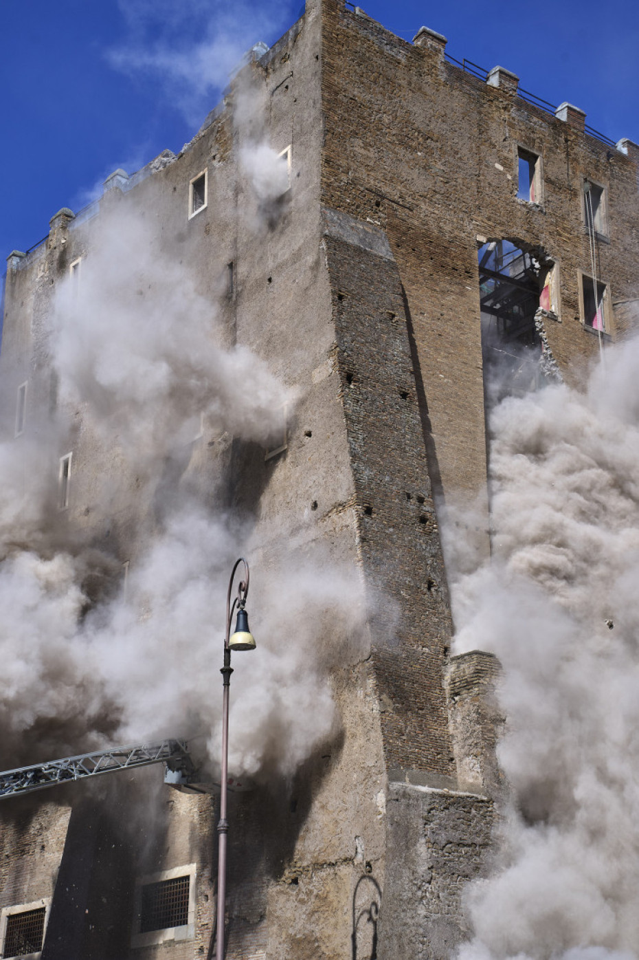 Deo pročelja kule, izgrađene u devetom, a proširene u 13. veku nedaleko Carskih foruma i Koloseuma, urušio se u ponedeljak ujutro, uz oblak prašine i zatrpao radnike na gradilištu.