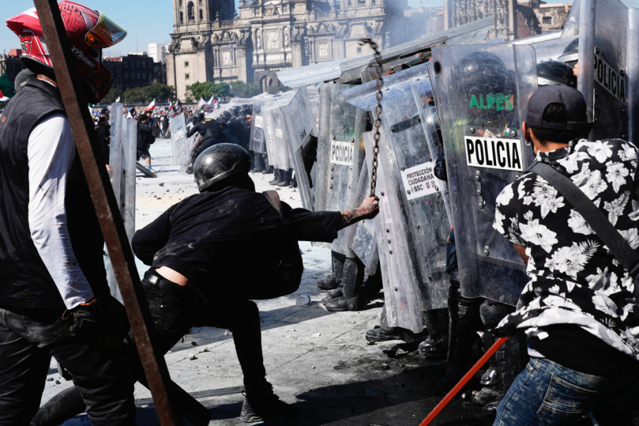 Demonstranti su demontirali delove barijere koja je štitila Nacionalnu palatu, rezidenciju predsednice Šajnbaum, a policija koja je štitila kompleks je upotrebila suzavac protiv okupljenih.