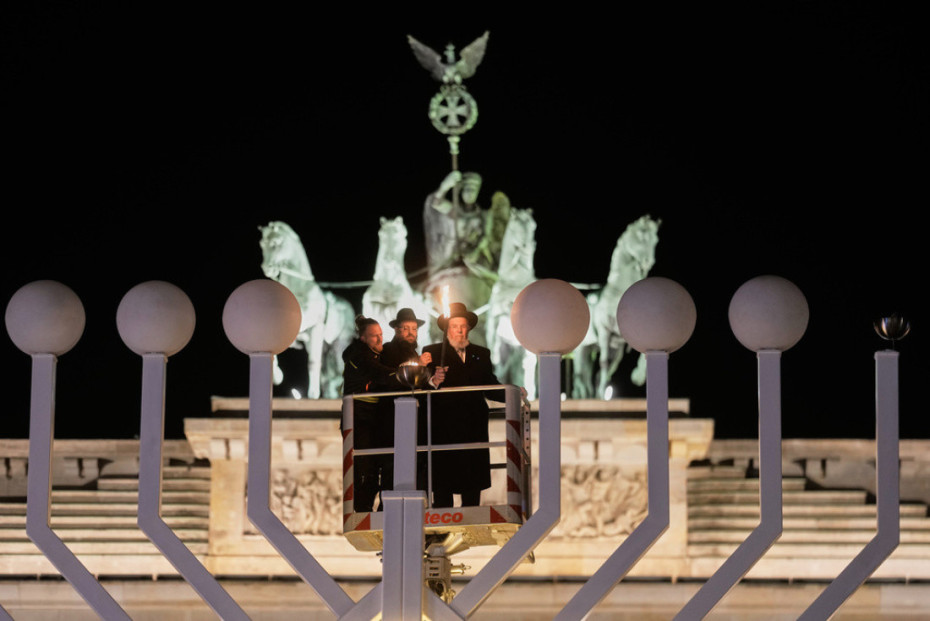Berlinska policija saopštila je da dodatno jača obezbeđenje oko Brandenburške kapije, gde je planirano paljenje velike električne menore povodom prve večeri Hanuke, preneo je Reuters.