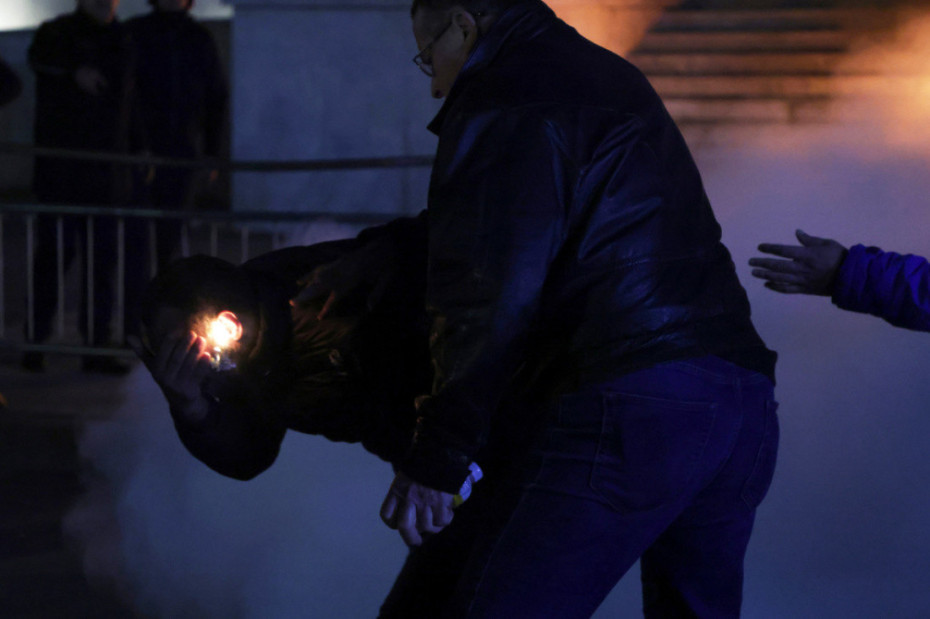 Dok su demonstranti bacali molotovljeve koktele, policija u opremi za razbijanje demonstracija štitila je zgradu vlade, ali nije potisnula demonstrante, piše Reuters.
