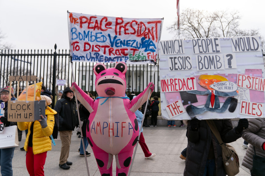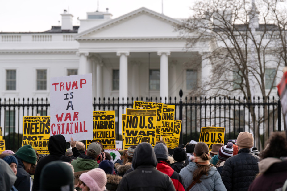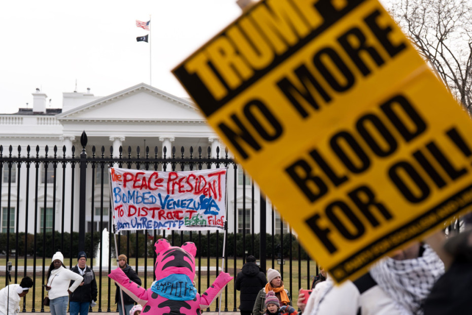 Više desetina ljudi okupilo se ispred Bele kuće, držeći transparente na kojima je pisalo "Nema rata protiv Venecuele", "Nema krvi za naftu" i "SAD dalje od Latinske Amerike", a demonstranti su pevali i držali venecuelanske zastave.
