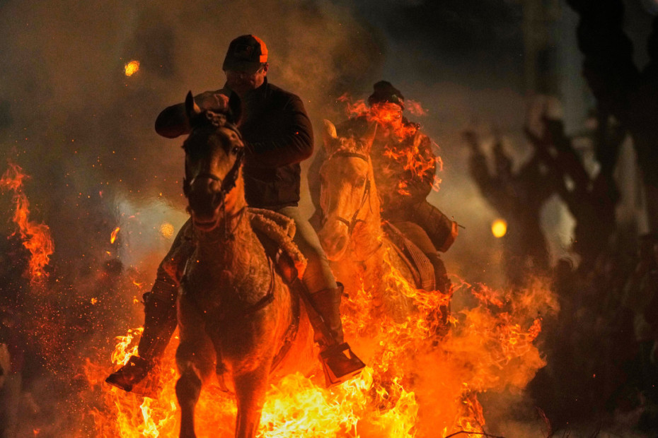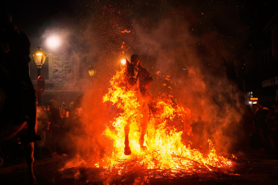 Stotine Španaca okupilo se kako bi posmatrale konje koji galopiraju kroz visoki plamen, u okviru manifestacije "Las Luminarias", vekovne tradicije koja se odvija u selu San Bartolome de Pinares, udaljenom oko 100 kilometara od Madrida.